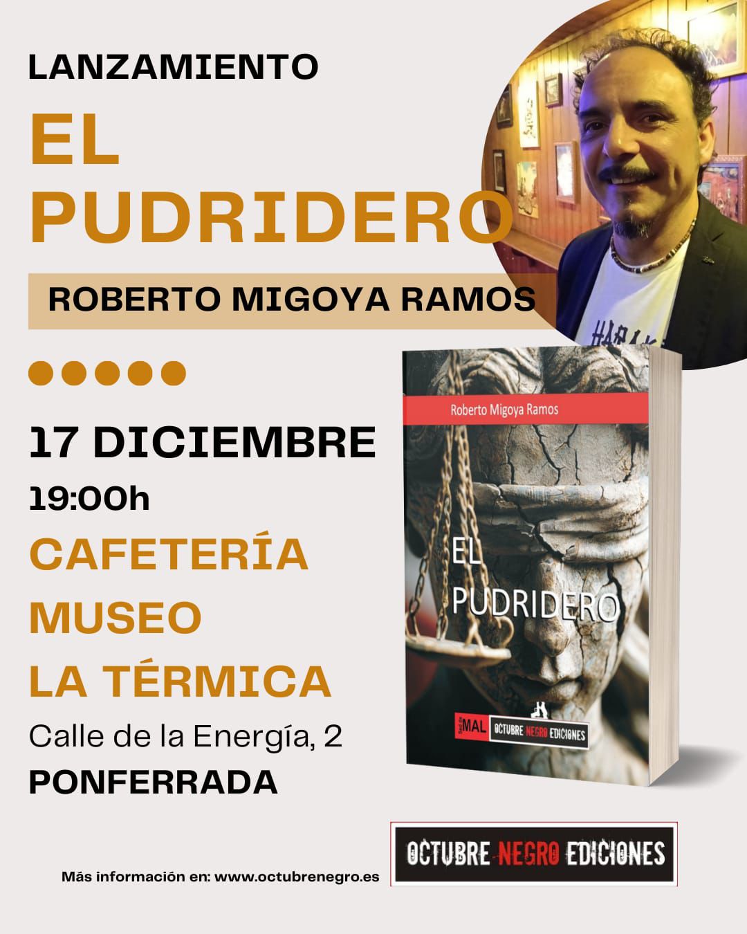 Roberto Migoya presenta la novela El pudridero el miércoles 17 de diciembre a las 19:00 horas en la cafetería de La Térmica Cultural.