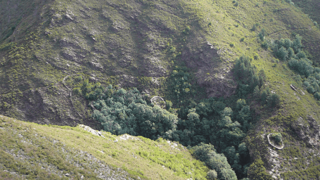 Los cortinos son construcciones por lo general de forma circular o semicircular, donde muros y voladizos parecen haber servido durante siglos para mantener las colmenas a salvo de los daños de los osos. Aunque la distribución de estos colmenares se amplía a algunas áreas de Galicia -donde son conocidos como albares o alvarizas-, León, Zamora, Salamanca, Extremadura y Portugal, es Asturias la región que alberga una mayor densidad de cortinos y una riqueza tipológica más llamativa. Es en el occidente peninsular donde la superposición de un sustrato cultural característico y la presencia de grandes extensiones de brezales parecen condicionar la presencia de estos colmenares.