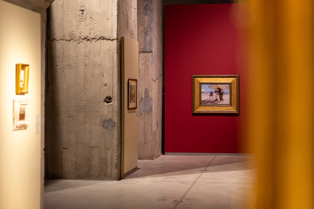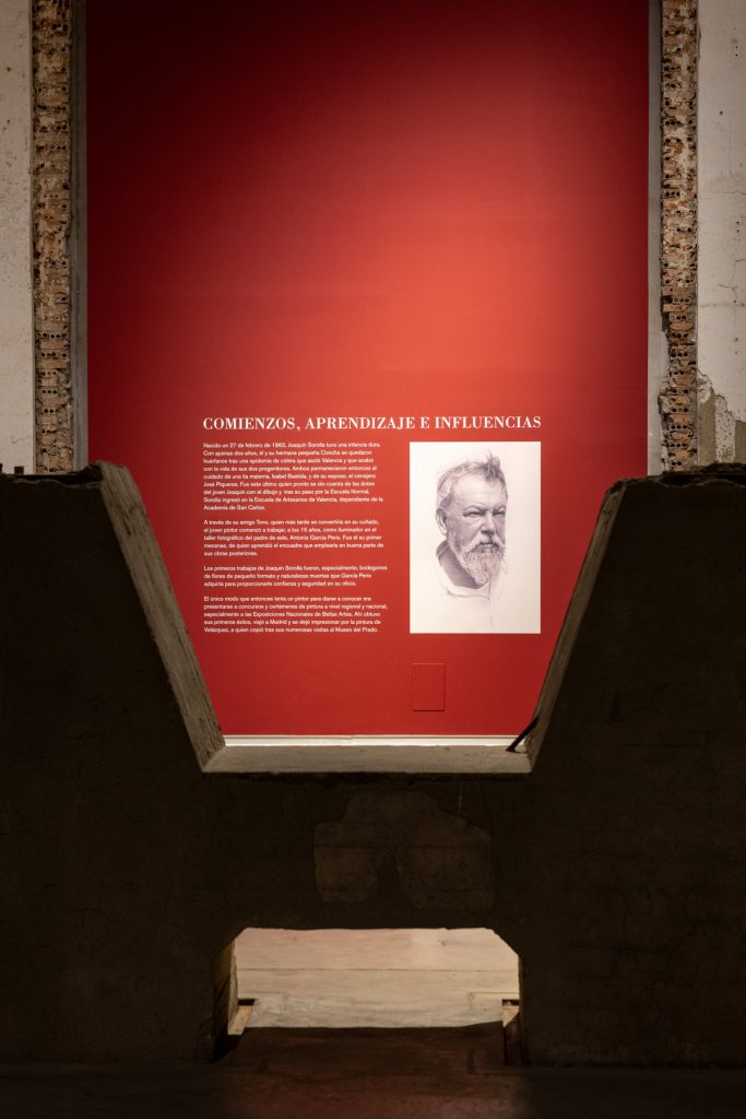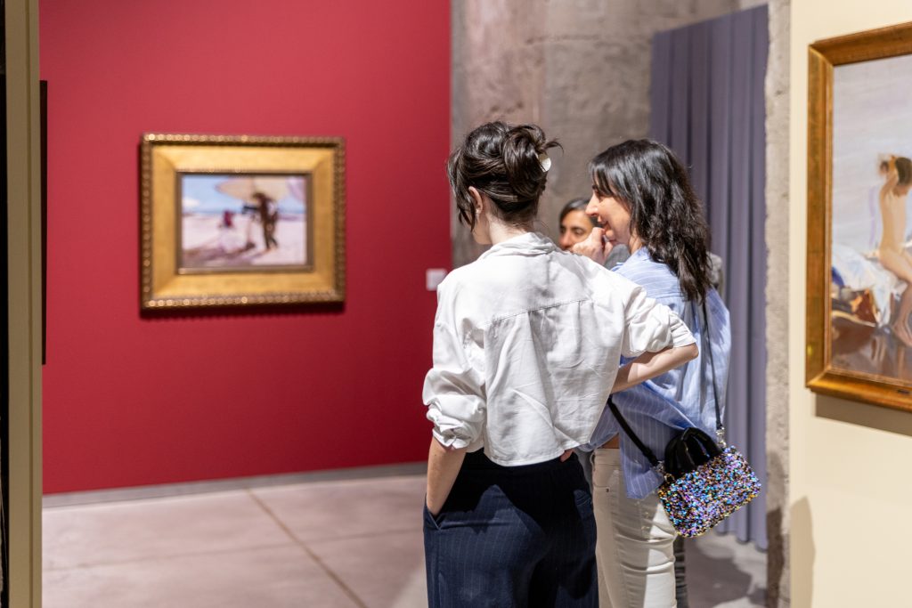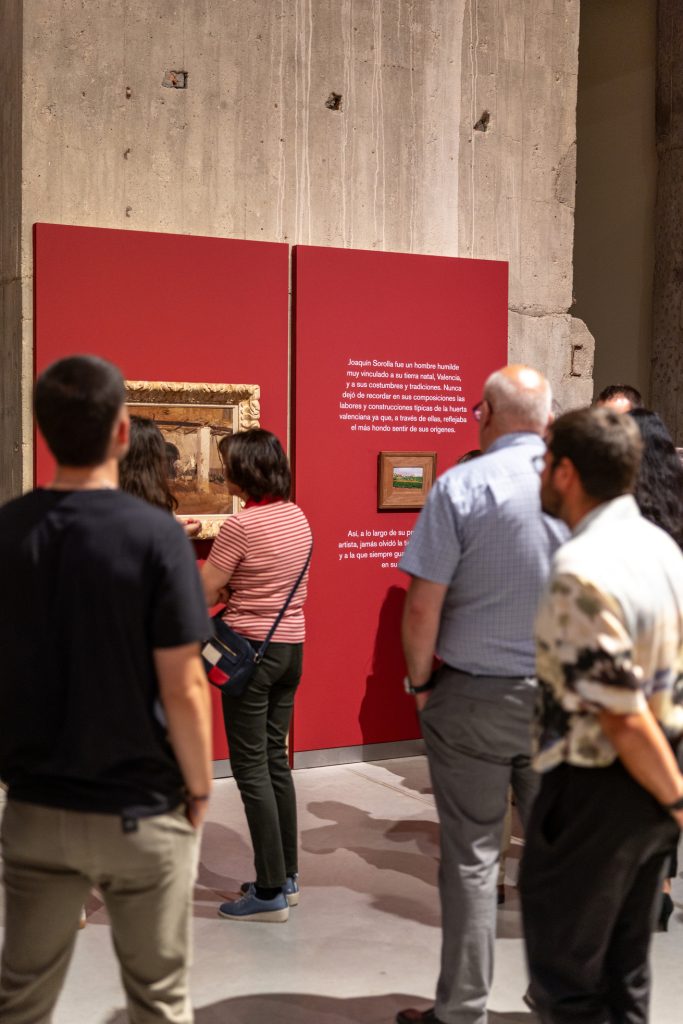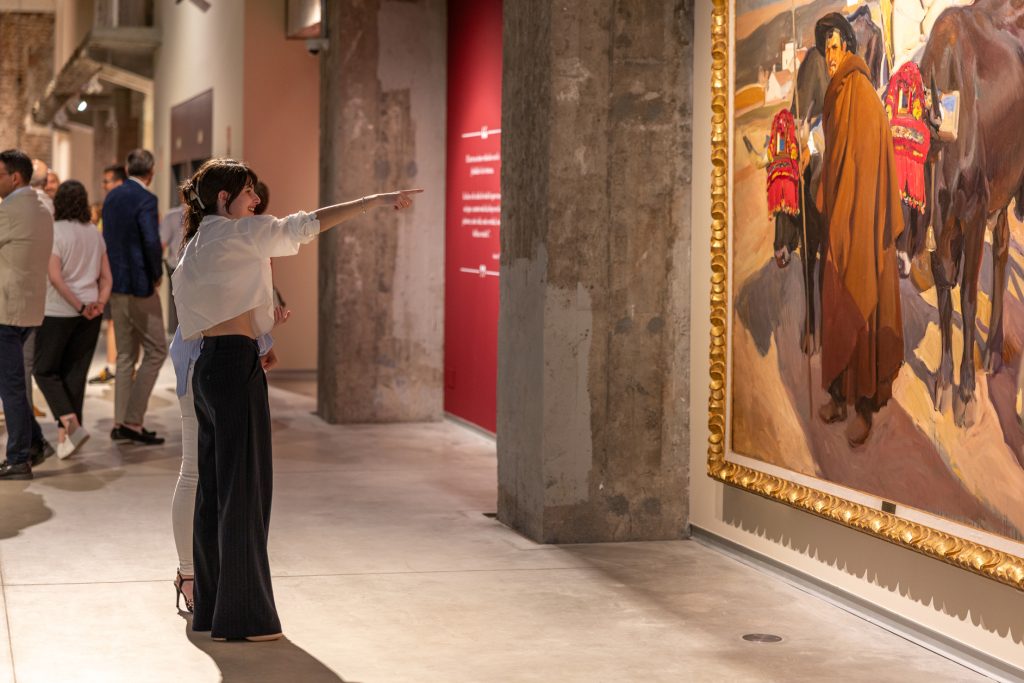 El recorrido que proponemos recoge la producción inicial de un joven Sorolla, además de sus temáticas más emblemáticas de mar y playa, sin olvidarnos de la seducción que provoca en el espectador su manejo soberbio del género del retrato. Una muestra que no olvida la vinculación del artista con este territorio, especialmente a partir del encargo que recibió de manos del hispanófilo Archer Milton Huntington para la decoración de la biblioteca de la Hispanic Society de Nueva York. Este cristalizó en el primero de los 14 paneles que formaron parte de su Visión de España y que llevaba por título La fiesta del pan, finalizado en 1913. Para documentarse, Sorolla viajó por toda Castilla, recogiendo ejemplos de sus tipos, indumentaria y joyería popular, ejerciendo, en cierto modo, como antropólogo de campo, ante la amenaza de desaparición de un mundo que languidecía.