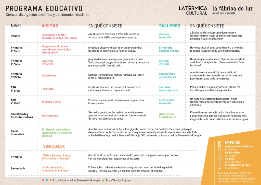 Nuevas visitas dinamizadas y talleres científico-tecnológicos, nos acercarán, de forma práctica y amena, a los principios fundamentales de la energía y la ciencia.